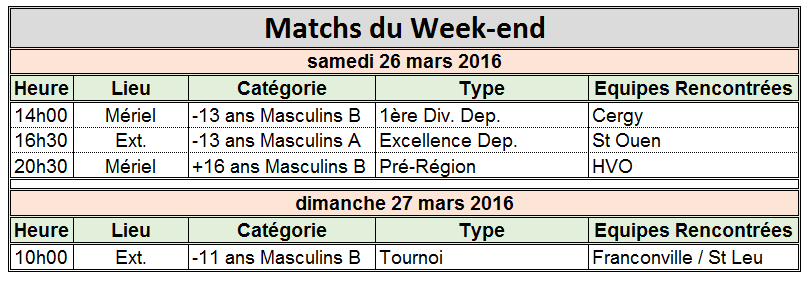 Week-end du 26 / 27 Mars 2016